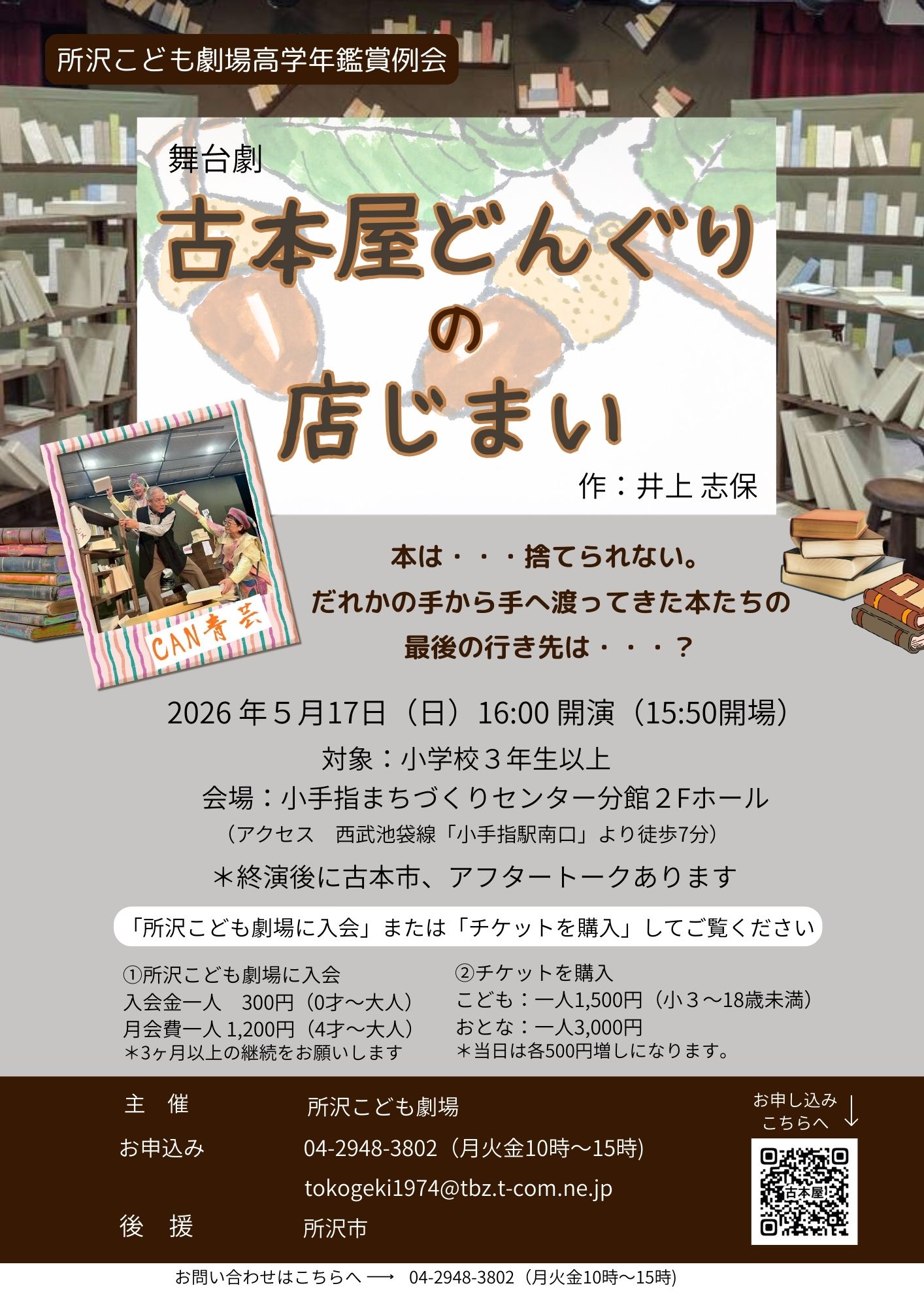 (高学年)「古本屋どんぐりの店じまい」(CAN青芸)’26年5月17日(日)